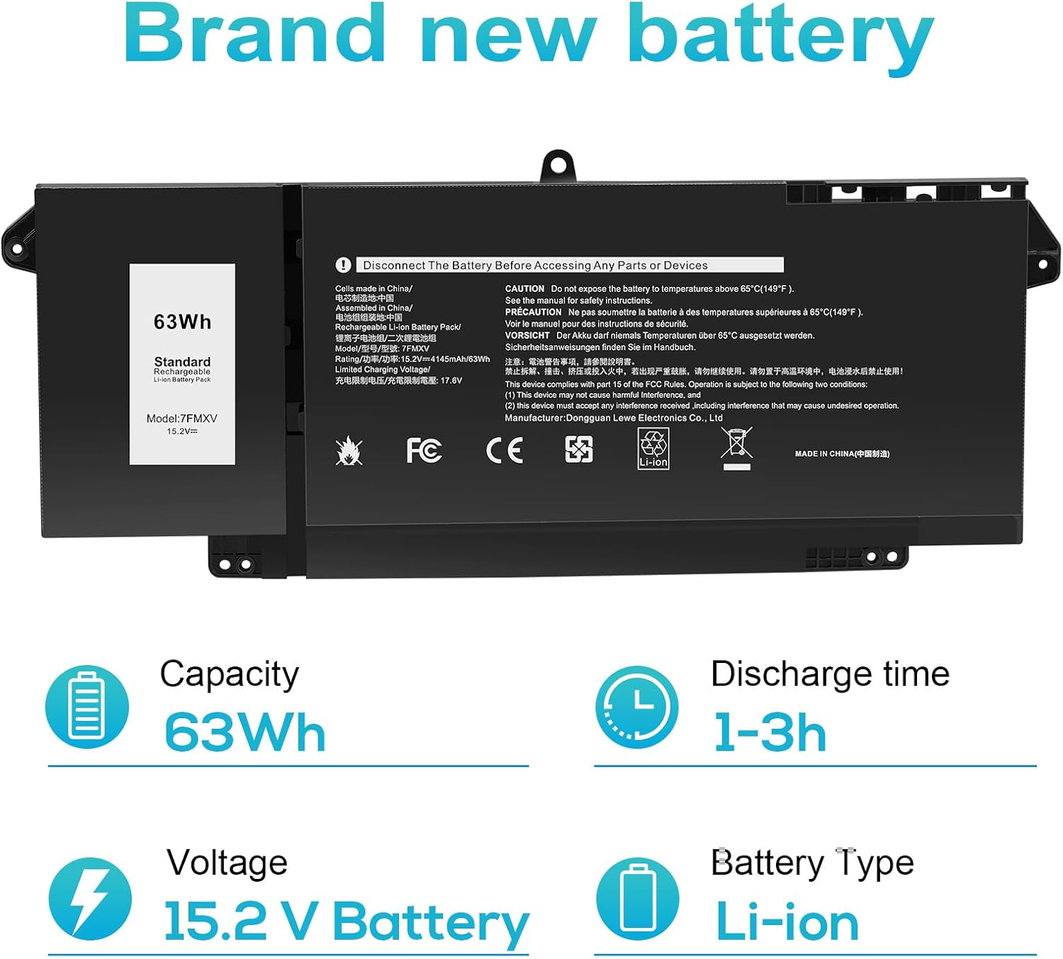 Daarnaast voldoet deze accu aan belangrijke veiligheidsnormen zoals CE, FCC en RoHS.